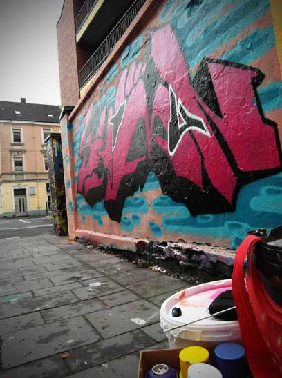 Kurzes Gastspiel in Unna: Da die Wand leider momentan von einigen Leute sehr stark frequentiert wird, ist leider nicht immer schön viel Platz, wenn man wie ich eher ungerne "heile" Bilder übermalt. Diesmal also die farbsparende Variante in klein.