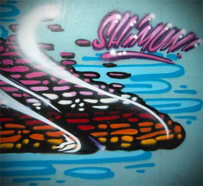 Aufgrund von spontanem Platzregen am Donnerstag musste ich die Fertigstellung dieses Graffitis leider etwas nach hinten verschieben. Da der Background heute also schon fertig war, hatte ich genügend Zeit mal einfach haufenweise Effekte bei diesem Bild auszuprobieren...
