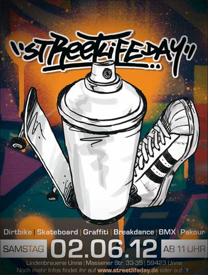 Auch dieses Jahr schmeißt Axel "Sony2" Ketz wieder mit nem Haufen Sponsoren und Helfern den Streetlifeday an der Lindenbrauerei in Unna. Das ganze steigt am Samstag den 02.06.2012 ab 11 Uhr.