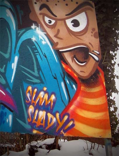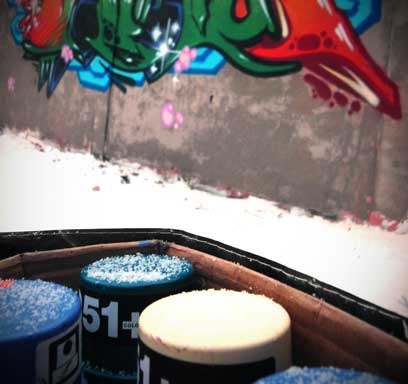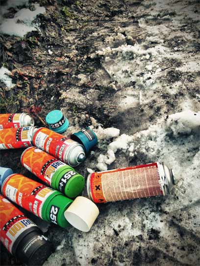 Wenn es überhaupt einen idealen Zeitpunkt gibt, an dem man seine "Karriere" im Graff-Biz an den Nagel hängen sollte, dann hab ich den entweder noch vor mir oder schon ewig lang verpennt. Ist eben Ansichtssache. Bis dahin stell ich mich weiterhin mit Sneakern knietief in Schnee, um mit nem Grinsen im Gesicht nach Hause zu gehen.